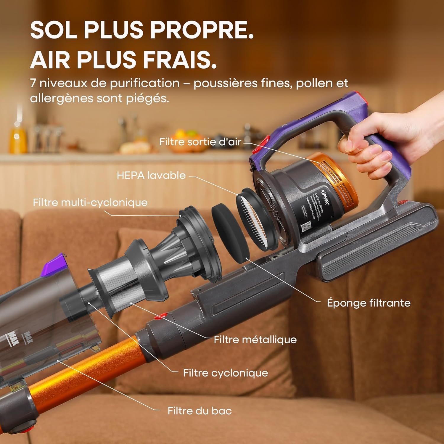 Le KIPMAX met en avant une filtration multicouches. Sur le papier, c’est sérieux. Dans la vraie vie, c’est surtout la partie qui exige le plus de régularité si tu veux garder une aspiration stable dans le temps.